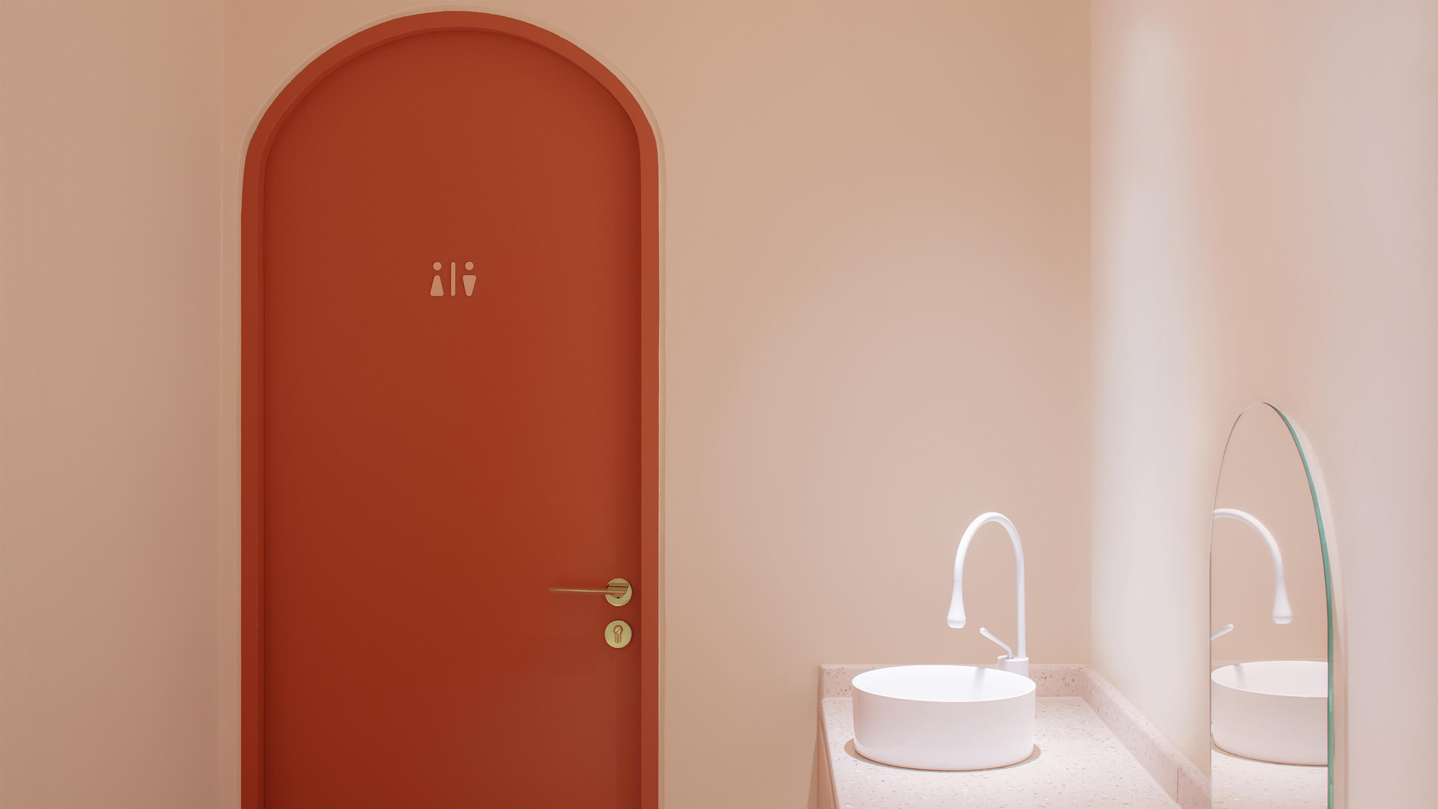 第三是对空间色彩的调整,美容行业是一个非常女性化行业,水仙的主要顾客人群也以女性为主,所以设计的空间选用了粉色系的色彩体系,希望打破人们对美容店单调的白色空间的传统看法,粉色的空间配合拱形的造型,拉近人与空间的距离,创造出独特的安全感和归属感。